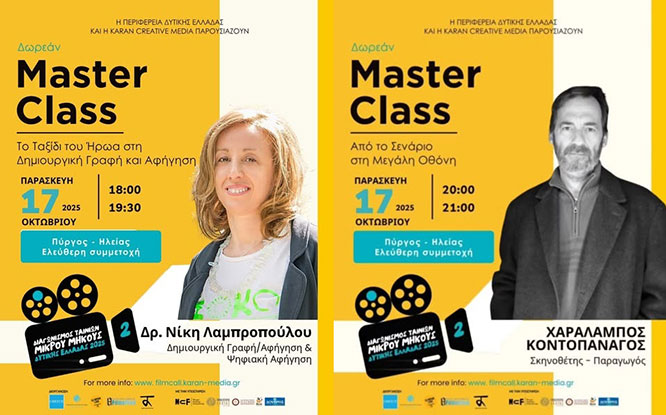 Ο Διαγωνισμός Ταινιών Μικρού Μήκους Δυτικής Ελλάδας 2025 εγκαινιάζει τη φετινή του παρουσία στον Νομό Ηλείας με ένα διπλό εργαστήριο αφιερωμένο στη δημιουργική γραφή και το σενάριο, που θα πραγματοποιηθεί την Παρασκευή 17 Οκτωβρίου 2025, στην Αίθουσα Περιφερειακού Συμβουλίου της Περιφερειακής Ενότητας Ηλείας στον Πύργο.